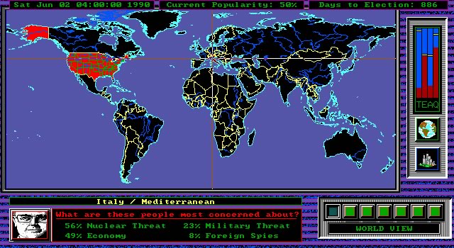 My first encounter. I spotted the game at Electronics Boutique, wedged between Railroad Tycoon Deluxe and a bargain-bin copy of Night Trap. The box promised “Simulation of Presidential World Power™”, less flashy than Mortal Kombat’s blood code, sure, but to a kid raised on nightly CNN footage of Operation Desert Storm, the idea of having the nuclear football one mouse-click away was irresistible. I slapped my lawn-mowing money on the counter, ignoring the clerk’s gentle reminder that Street Fighter II Championship Edition was “actually fun.” (No regrets. Mostly.)